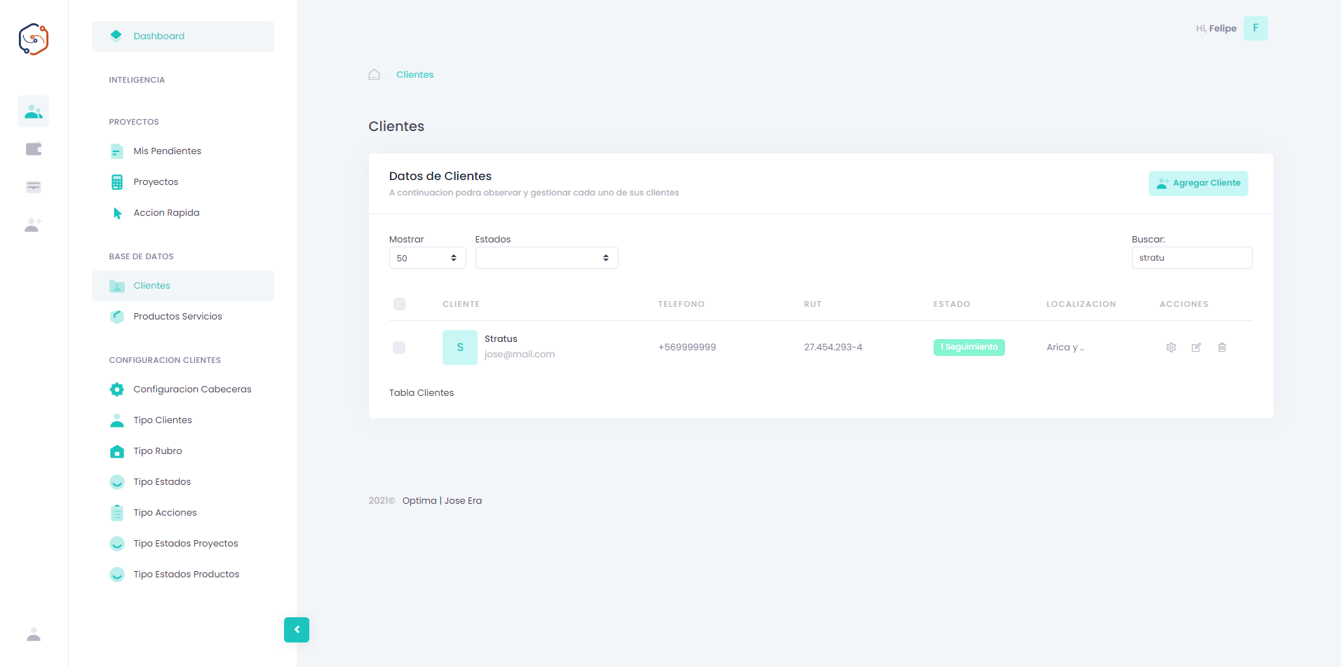 Desarrollo de CRM empresarial, dedicado a facilitar el proceso de gestión por parte de las empresa. Software desarrollado para la empresa Optima Ingenieria Chile.